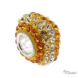 Here are some of the great features of Acosta Beads - Yellow, White & Orange Swarovski Crystal Square Bead - Slide On & Off Charm (Sterling Silver Core)