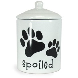 DII , The Ceramic Dog Treat Jar is an amusing canister that holds treats and other pet food. This dog treat jar has the word "Spoiled" printed on its side and comes with matching jar lid to seal in freshness. Think of this as a candy jar for your pet. The durable dog food container is easy to clean dishwasher safe and will look great on your countertop for years to come. Ceramic Dog Treat Jar Features Keeps treats fresh and tasting good. The word "Spoiled" is printed on the side. Sold with matching lid. Durable ceramic will last a long time. Easy to clean and dishwasher safe.